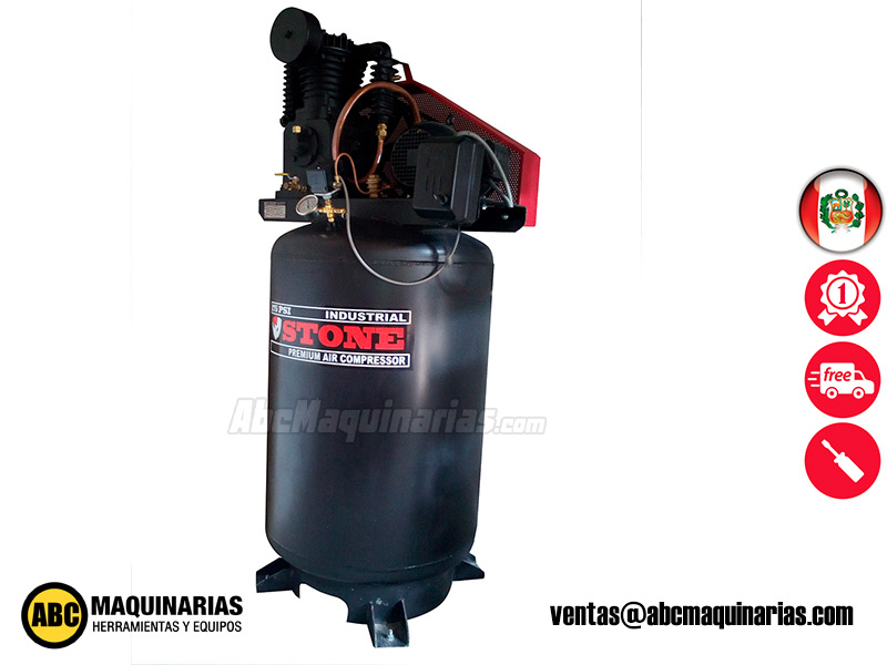 Compresor eléctrico de doble etapa STONE® con cabezal de fierro fundido y motor Weg/Siemens®.