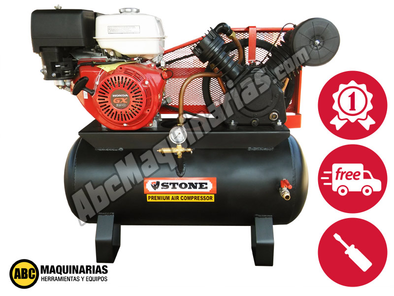 Compresor compacto a Gasolina STONE® con cabezal de fierro fundido y motor Honda® GX270.