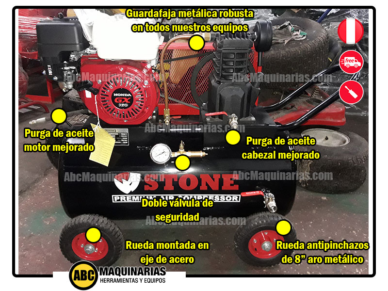 Compresor portátil a Gasolina RAPTOR12G STONE® con cabezal de fierro fundido Campbell® y motor Honda® GX160.