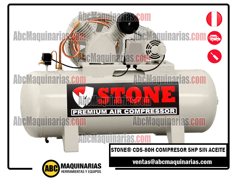 Compresor de aire libre de aceite con cabezal de doble etapa (175 PSI) y de 5HP para clínicas, hospitales, laboratorios o industria alimenticia.