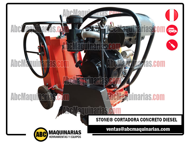 Cortadora de pavimento STONE® de fabricación nacional con estructura robusta y confiable con motor RANGER® 16HP con arranque eléctrico mediante batería, son usadas para el corte de concreto y asfalto.