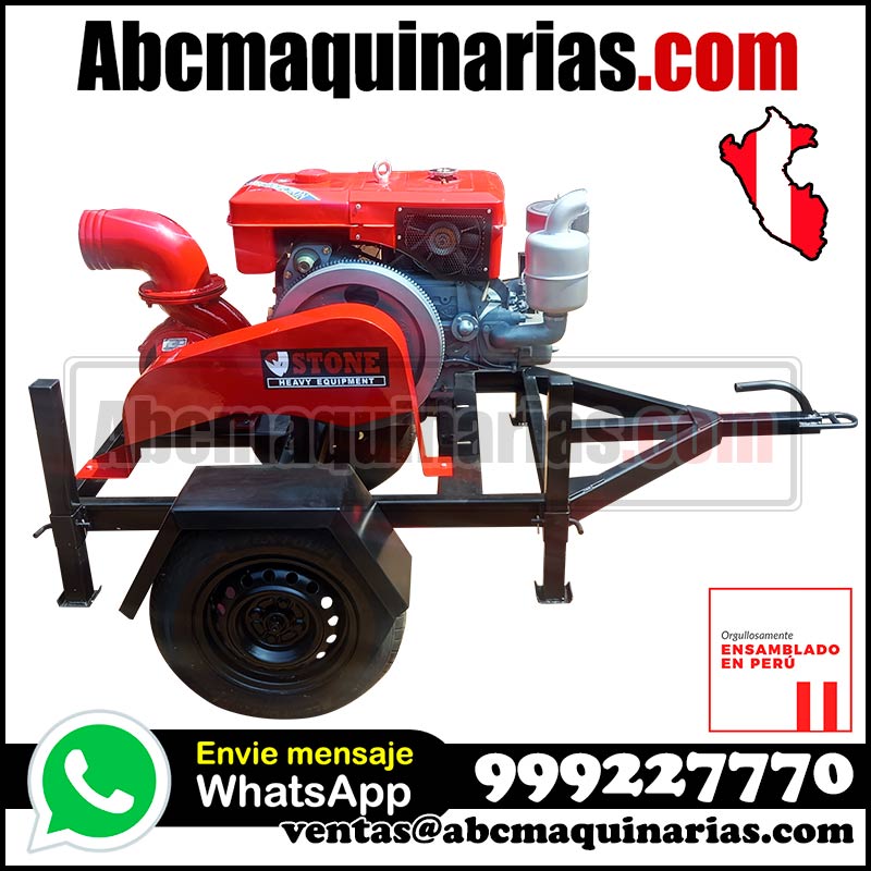 Motobomba centrífuga tipo caracol de fierro fundido 6" x 6" con transmisión mediante polea y fajas, con motor diesel (Petrolero) con encendido eléctrico mediante batería.