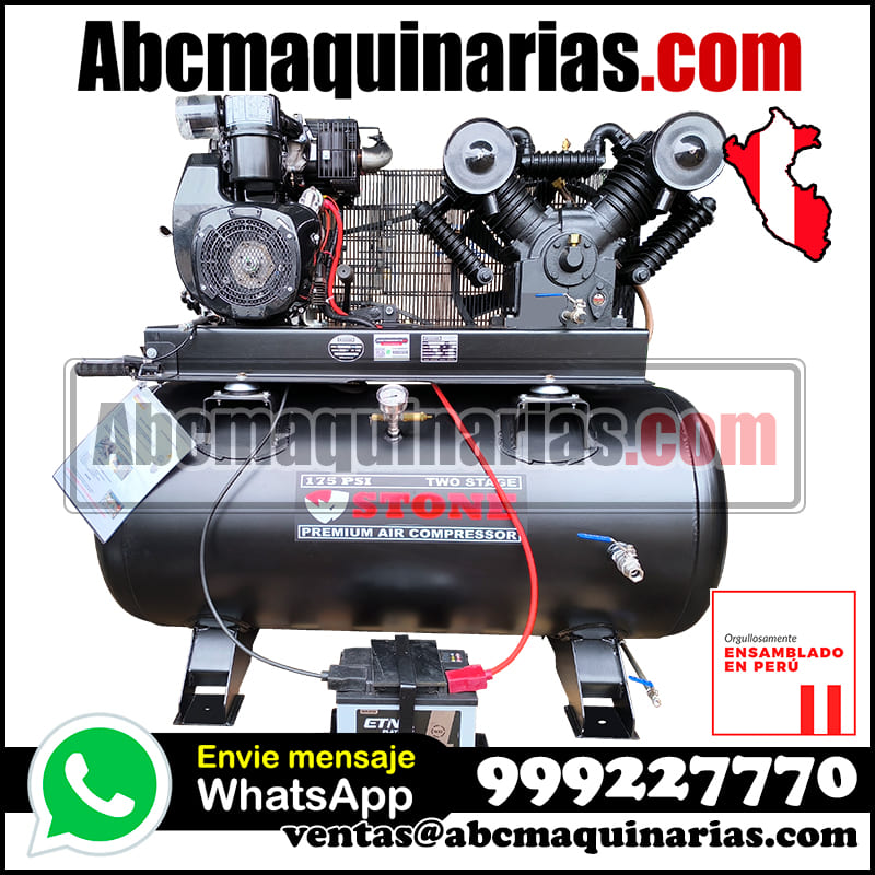 Compresor autónomo de doble etapa STONE®, motor petrolero LOMBARDINI® para servicio rudo. USO EN CAMIÓN