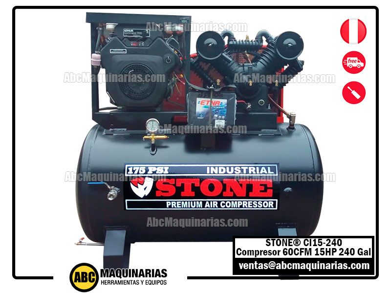 Compresor compacto a Gasolina STONE® con cabezal de fierro fundido y motor Kohler®.